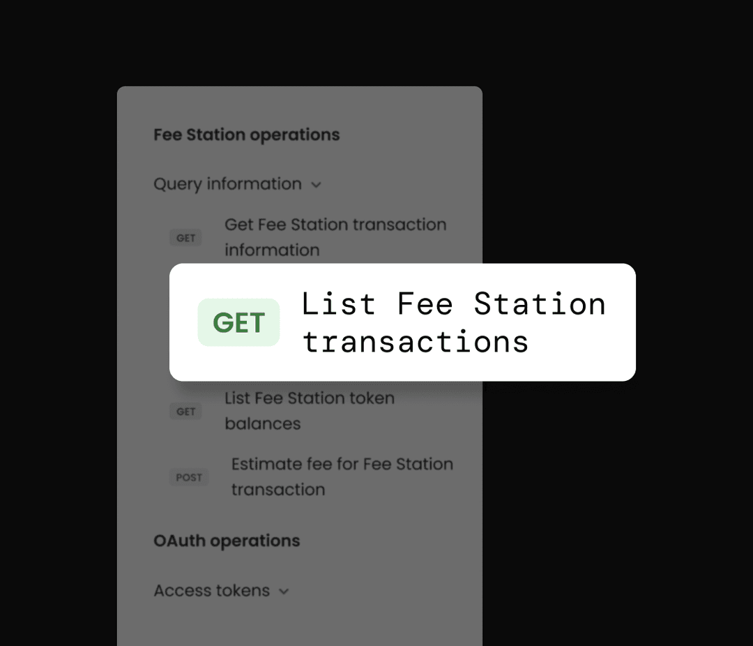 Fee Station offers APIs and webhooks for real-time balance and transaction notifications.