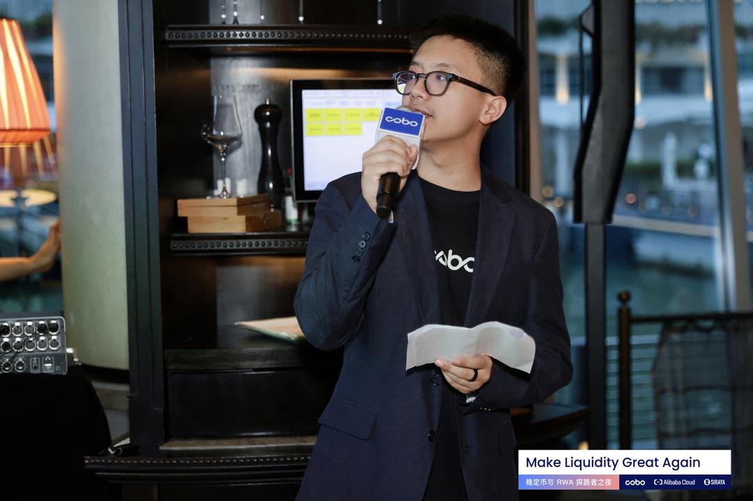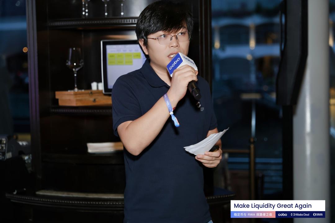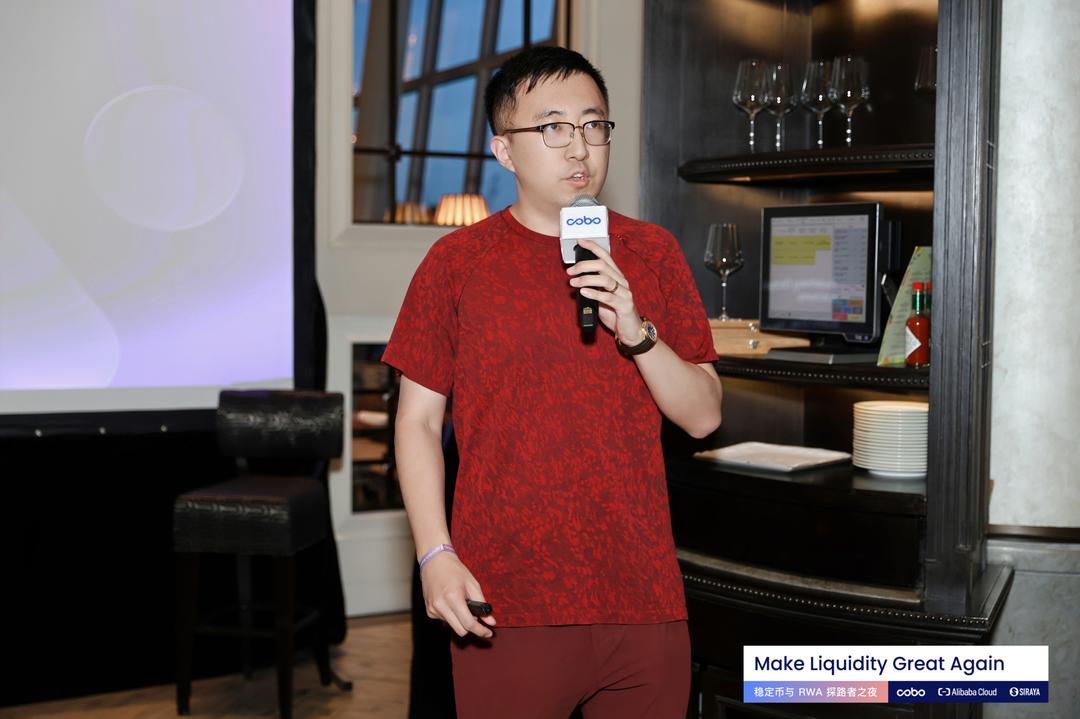 Alex Zuo, SVP at Cobo Alex opened the evening by framing Cobo’s mission as both a custodian of assets and of trust. He highlighted Cobo’s scale — safeguarding billions in digital assets and serving over 500 institutional clients globally — while pointing to the need for infrastructure that balances security, compliance, and efficiency. (Photo of Alex Zuo)