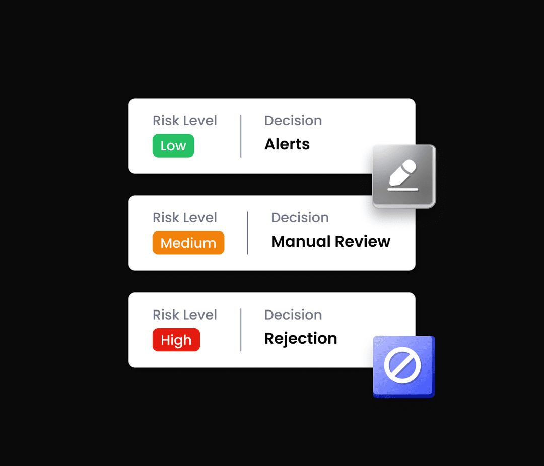 利用我们的实时扫描引擎,有效防御高风险交易。系统即时识别可疑活动、自动生成风险评分,并在威胁影响运营前迅速启动应对措施。