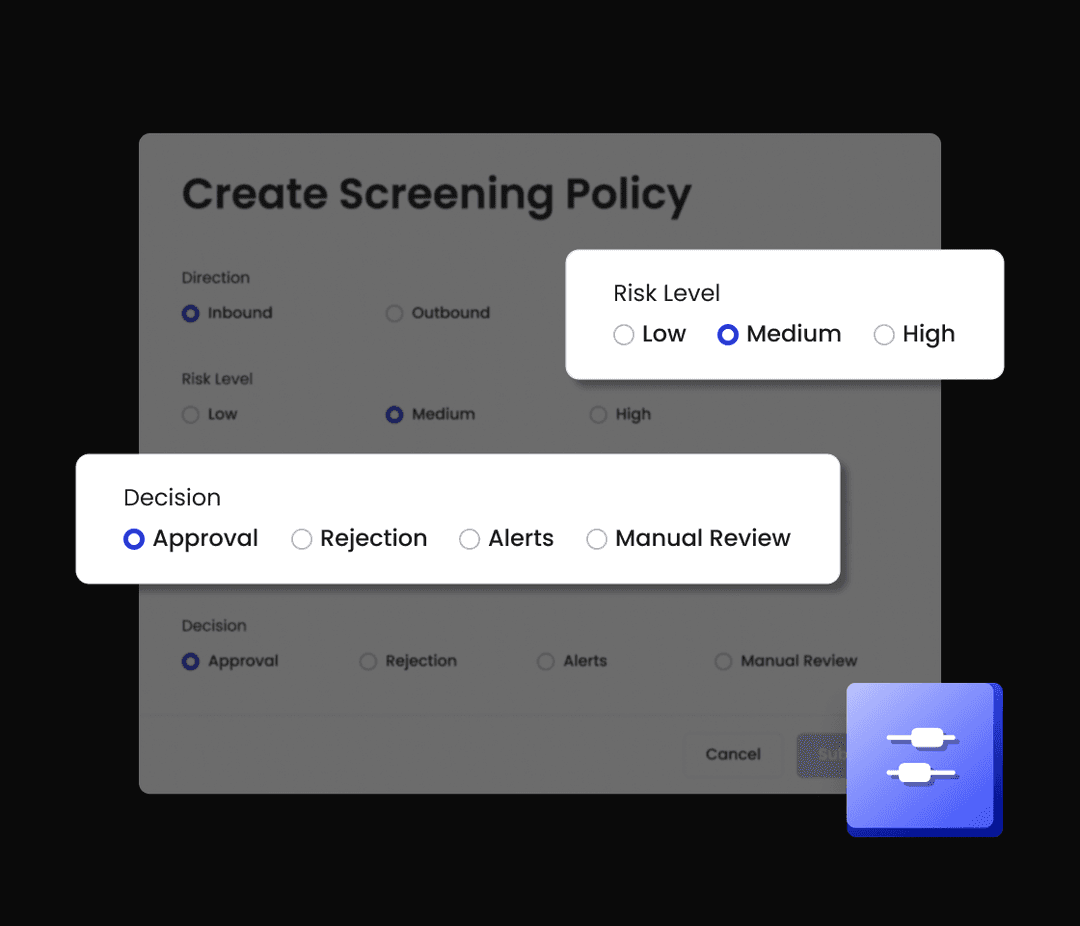 按需定制合规规则,全面掌控风险管理。仅需几次点击,便可设置交易方向、风险级别及金额门槛等标准,精细调控您的监控配置。